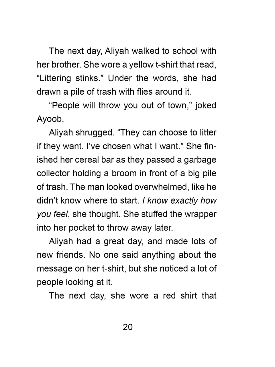 When Aliyah moves to Dumpton, she discovers a town full of litter. Determined not to let this bad habit go unchecked, she hatches a plan to inspire her neighbours to change.